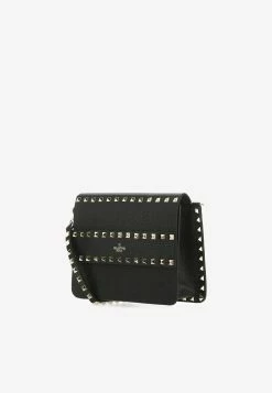 Valentino Small Rockstud Grained Leather Crossbody Bag Black