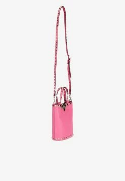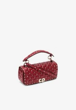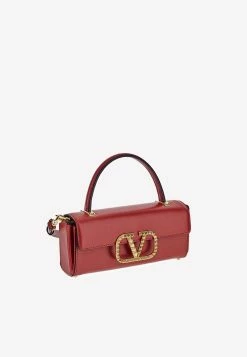 Valentino Rockstud VLogo Top Handle Bags In Calf Leather Red