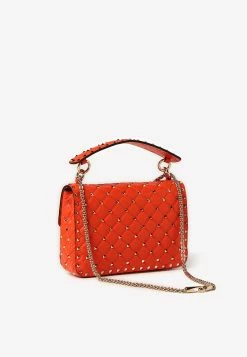 Valentino Rockstud Spike Top Handle Bag In Nappa Leather Orange