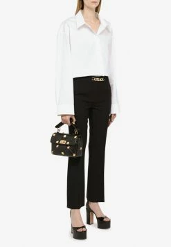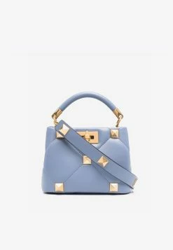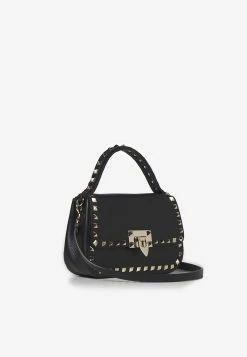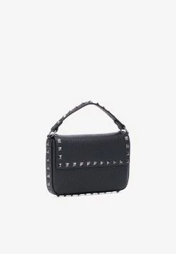 Valentino Small Rockstud Top Handle Bag In Grained Leather Black