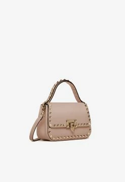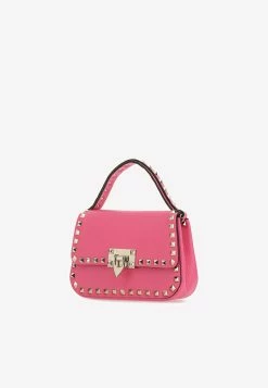 Valentino Small Rockstud Top Handle Bag In Grained Leather Blush