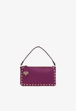 Valentino Small Rockstud Crossbody Bag In Grained Leather Purple