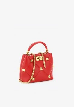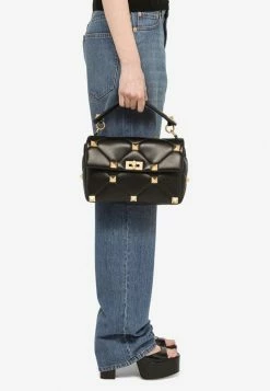 Valentino Roman Stud Shoulder Bag In Quilted Nappa Leather Black