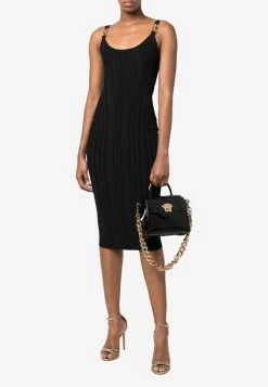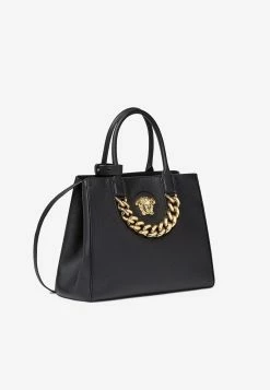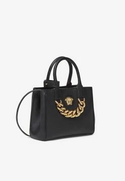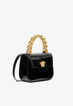 Versace Small La Medusa Top Handle Bag In Patent Leather Black
