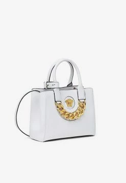 Versace Small La Medusa Top Handle Bag In Calf Leather White