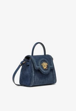 Versace Small La Medusa Top Handle Bag In Calf Leather Brown