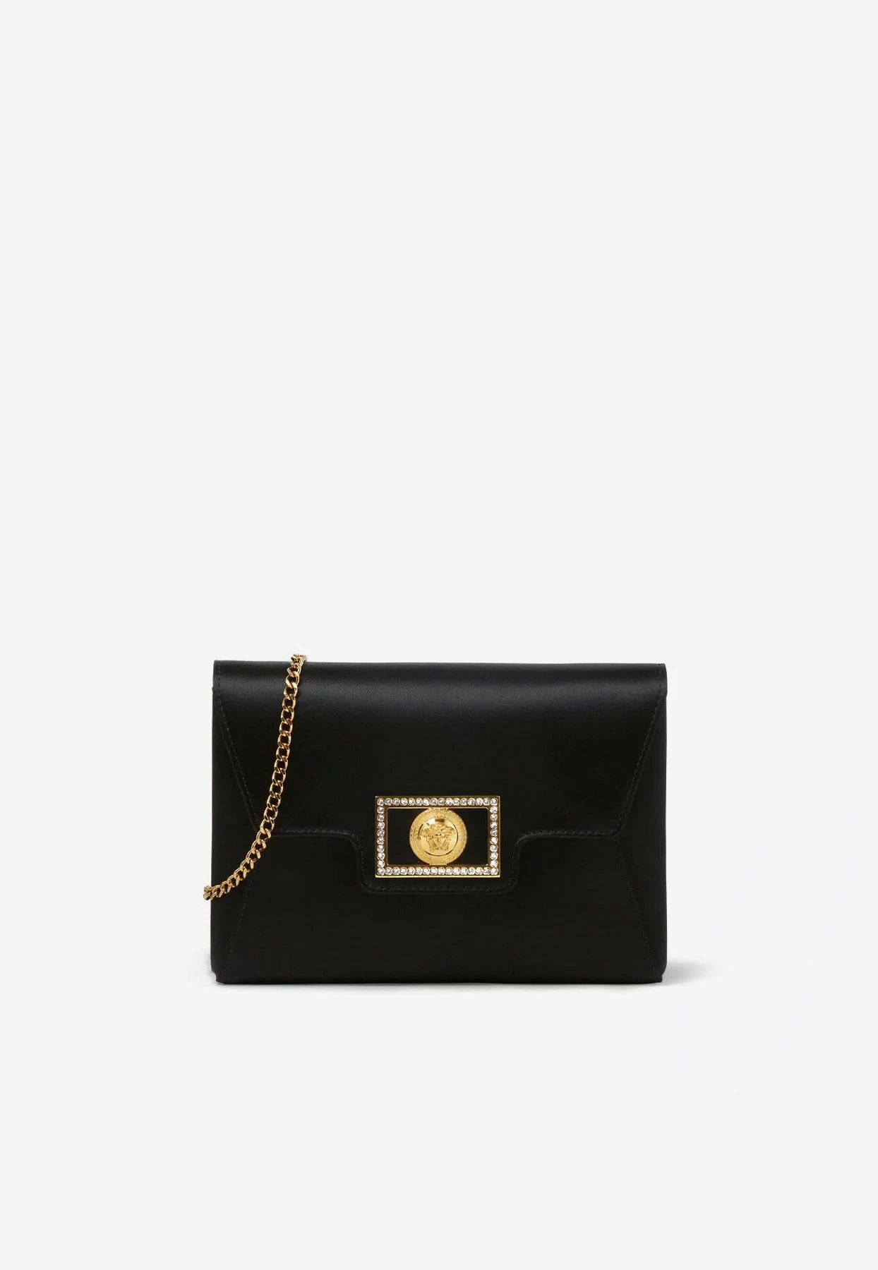 Be the first to review “Versace La Medusa Crystal-Embellished Satin Clutch Black” Cancel reply